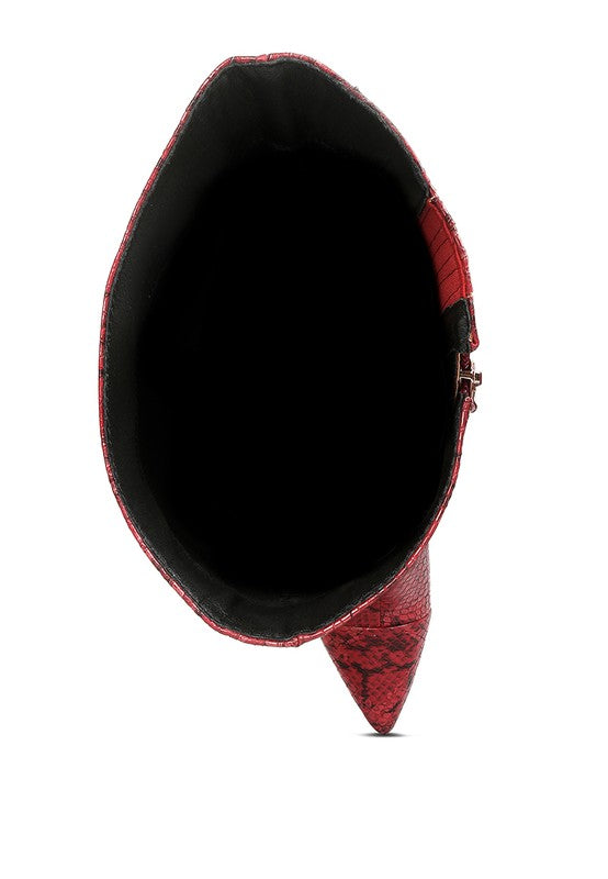 Wearing these amazing snake pattern knee heel boots will make you stand out from the crowd. The all-over pattern is eye-catching and unique, the heels will enhance your confidence, and the side zipper opening makes it simple to put on. These boots are essential for dressing up for a night out or adding some flair to your everyday outfit.